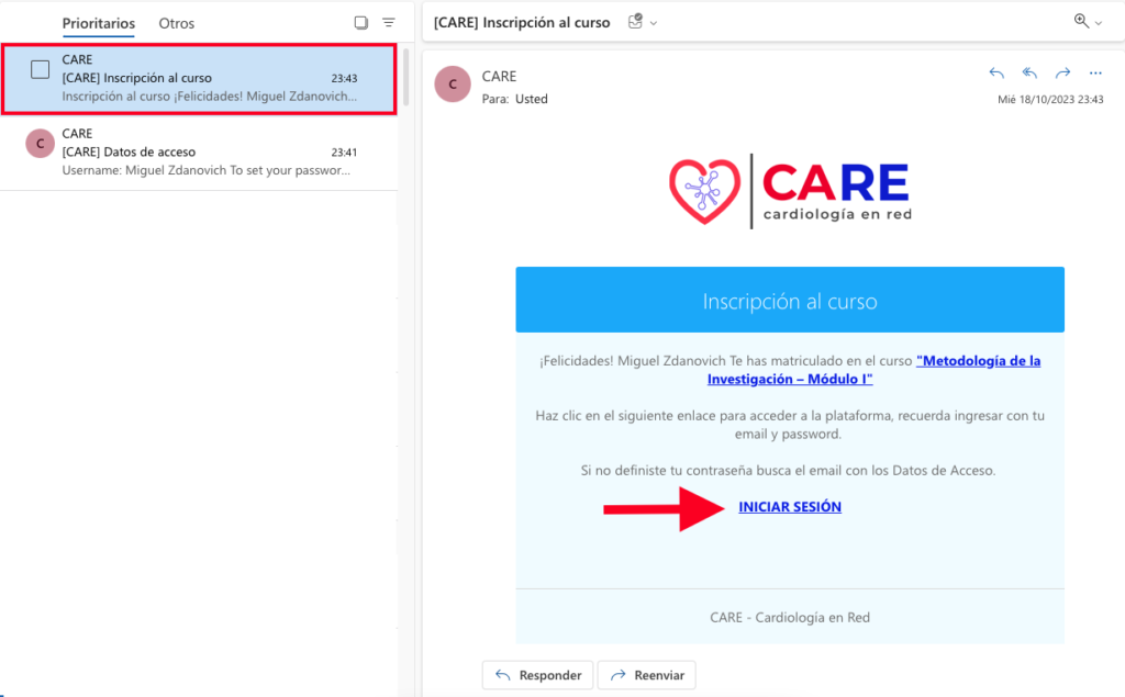 Cuando se te asigna un curso, te va a llegar un email de notificación para avisarte que fuiste matriculado al curso.