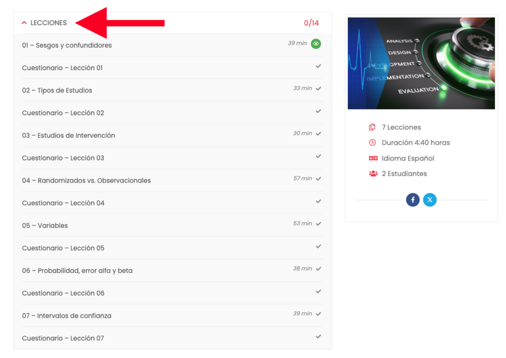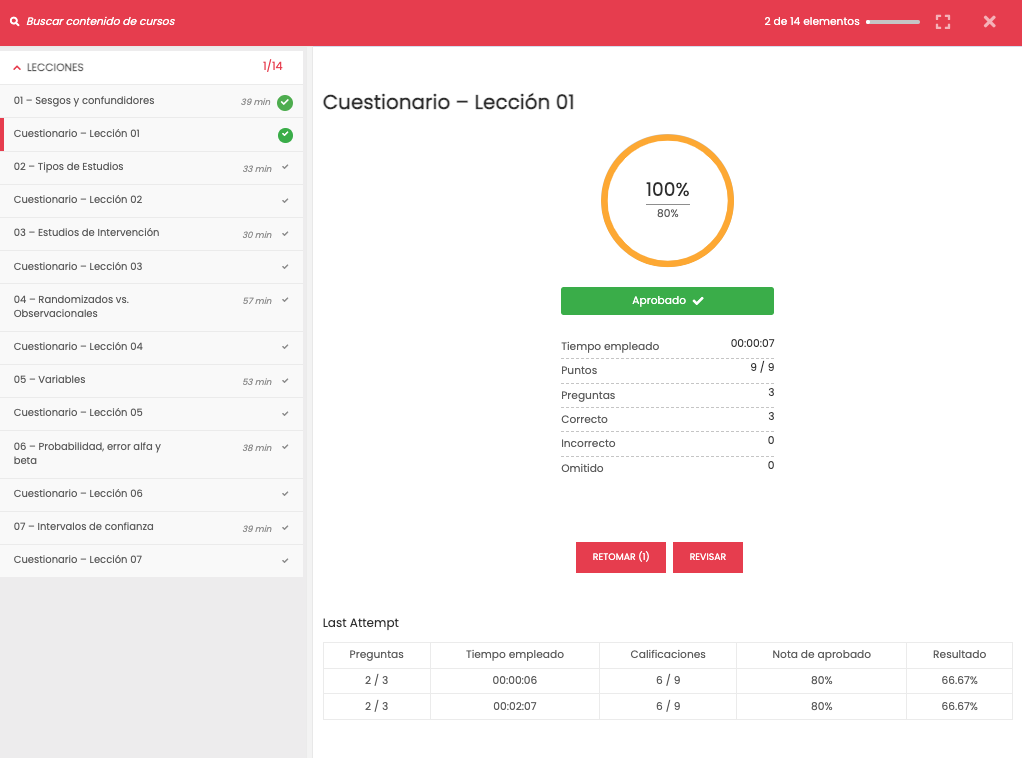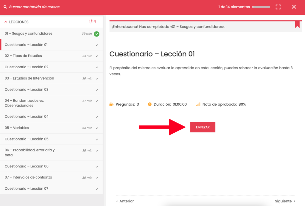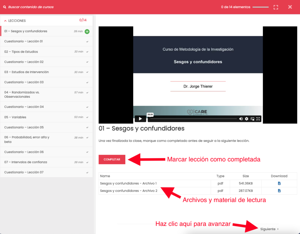- Marca como completada una lección para dejar registrado en el sistema que ya la viste.
